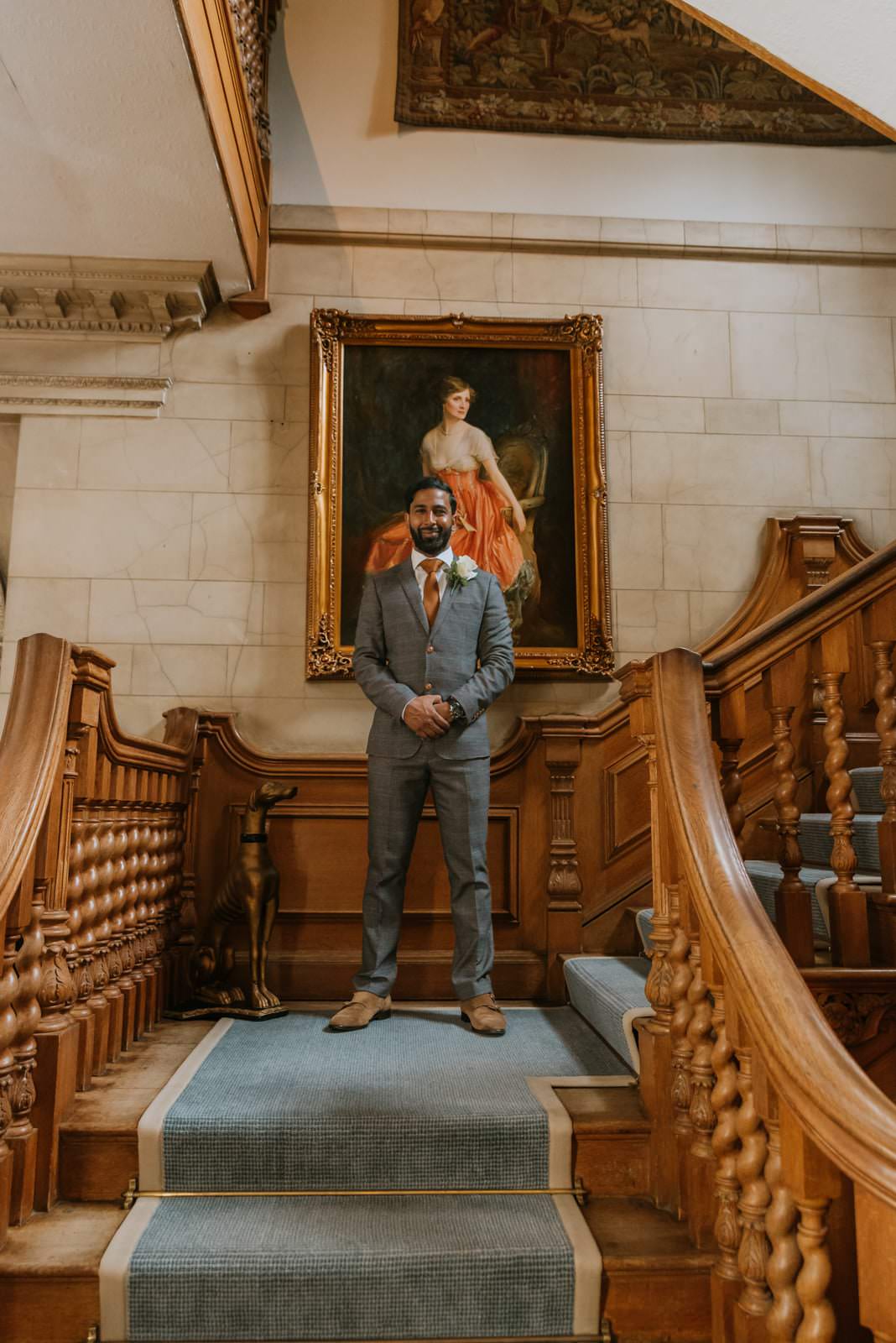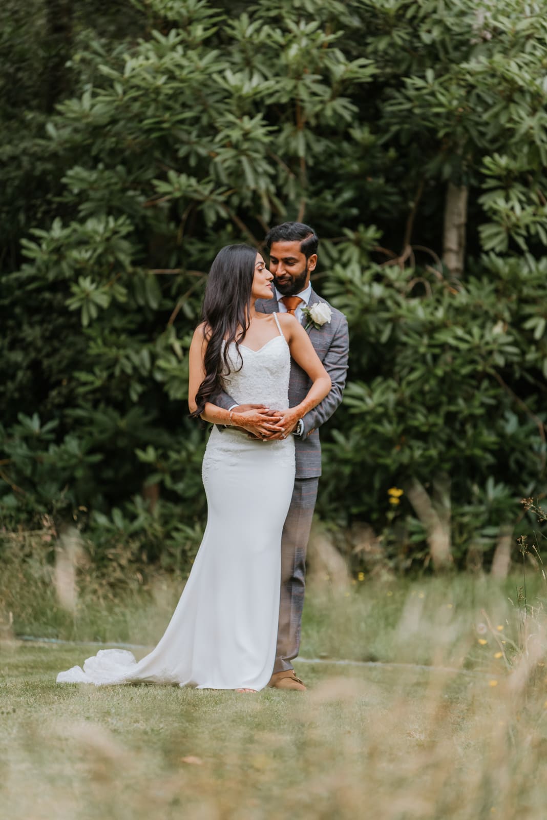 The grounds are perfect for couples’ portraits. We were driven in a golf buggy with the bride and groom onto the grounds overlooking the country house. The day was sunny and bright for all the natural portraits.