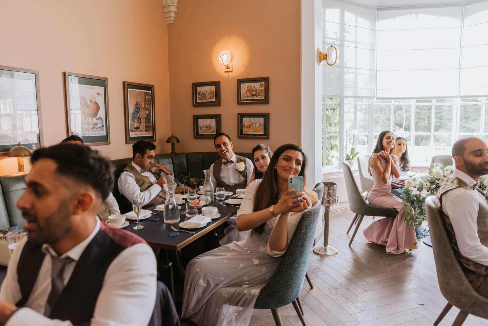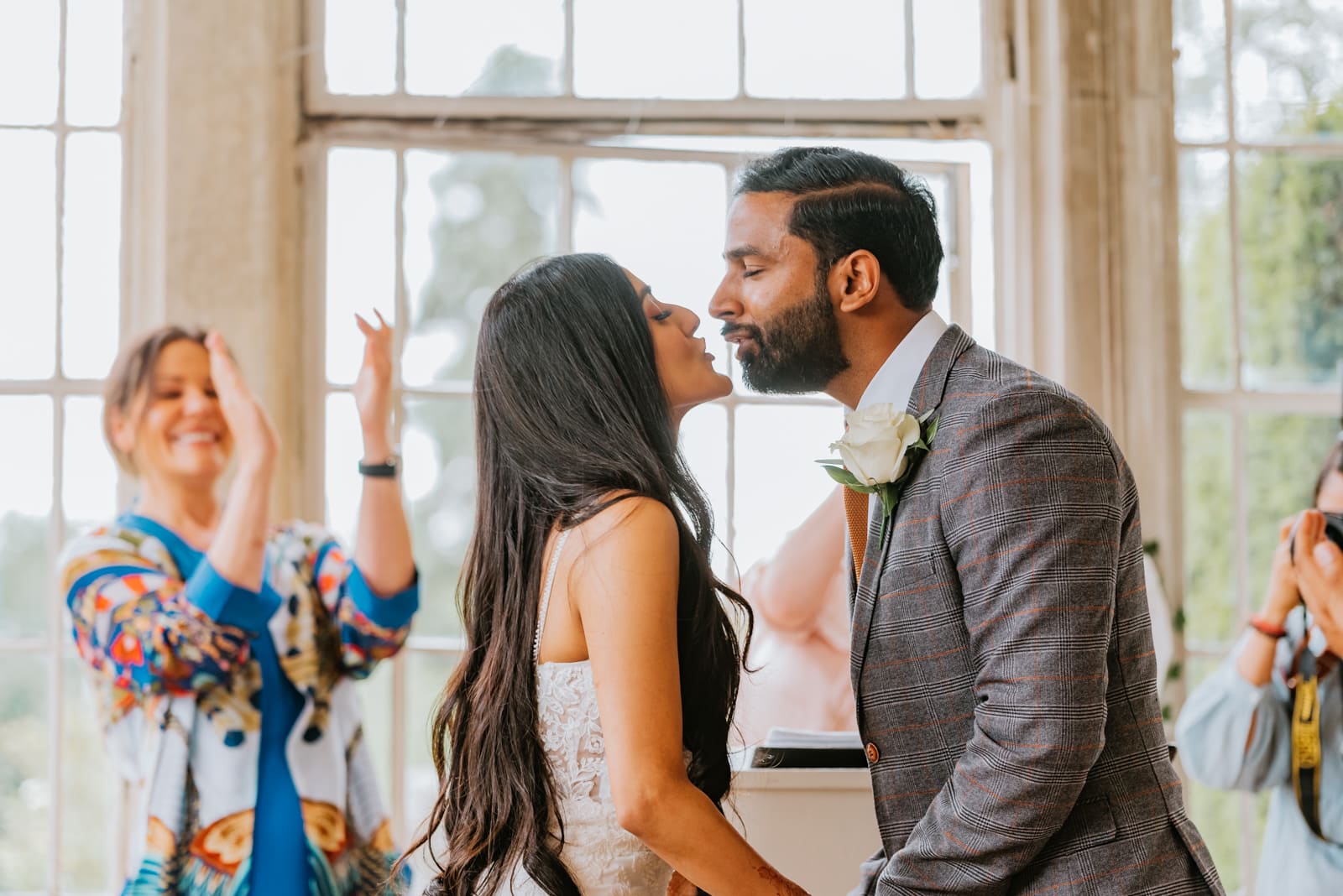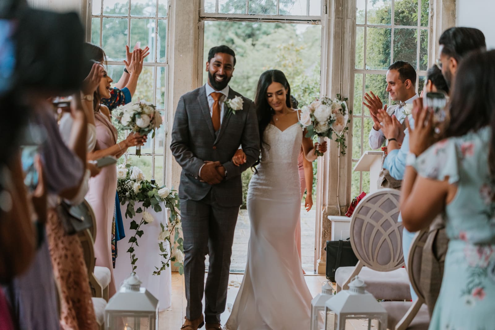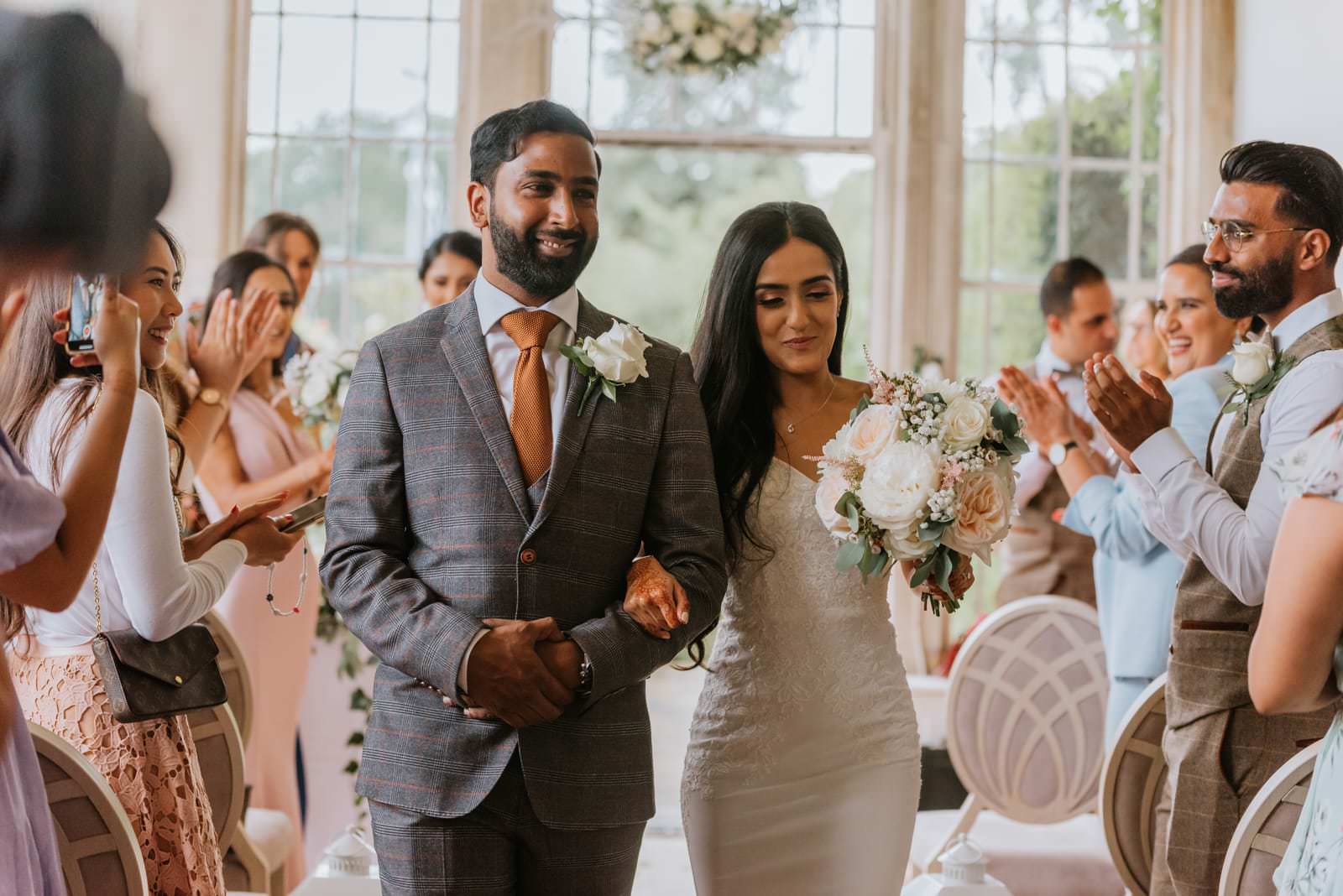 The wedding vows took place in the Orangery where the couple said their own vows. The friends and family were all seated in the house and the place was decorated with succulents and white roses. Manvi walked down the aisle with her mum. After the ceremony, the guest gathered outside and formed two lines for epic bubbles of confetti. and as you can see from the photos, it looked epic