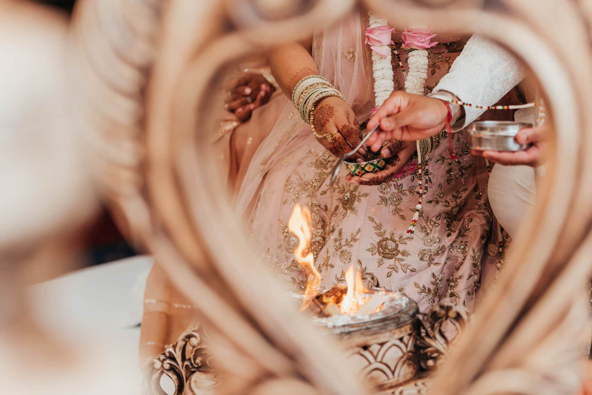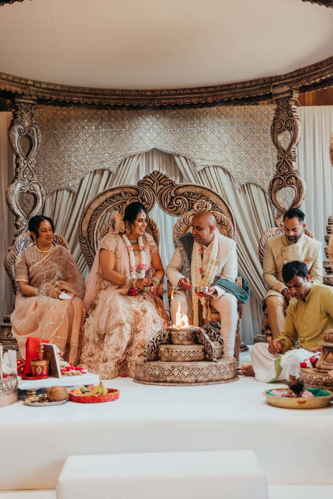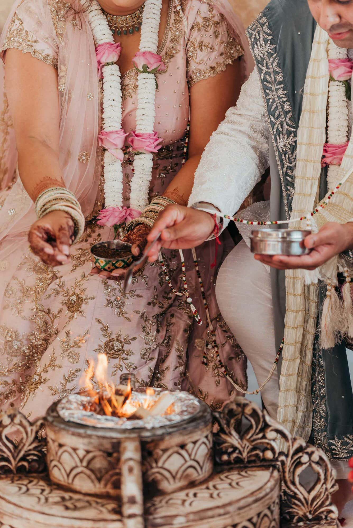 The ceremony was Hindu traditional ceremony under a flower arch. During the ceremony everyone sat down and enjoyed the mantras. It was so meaningful.
