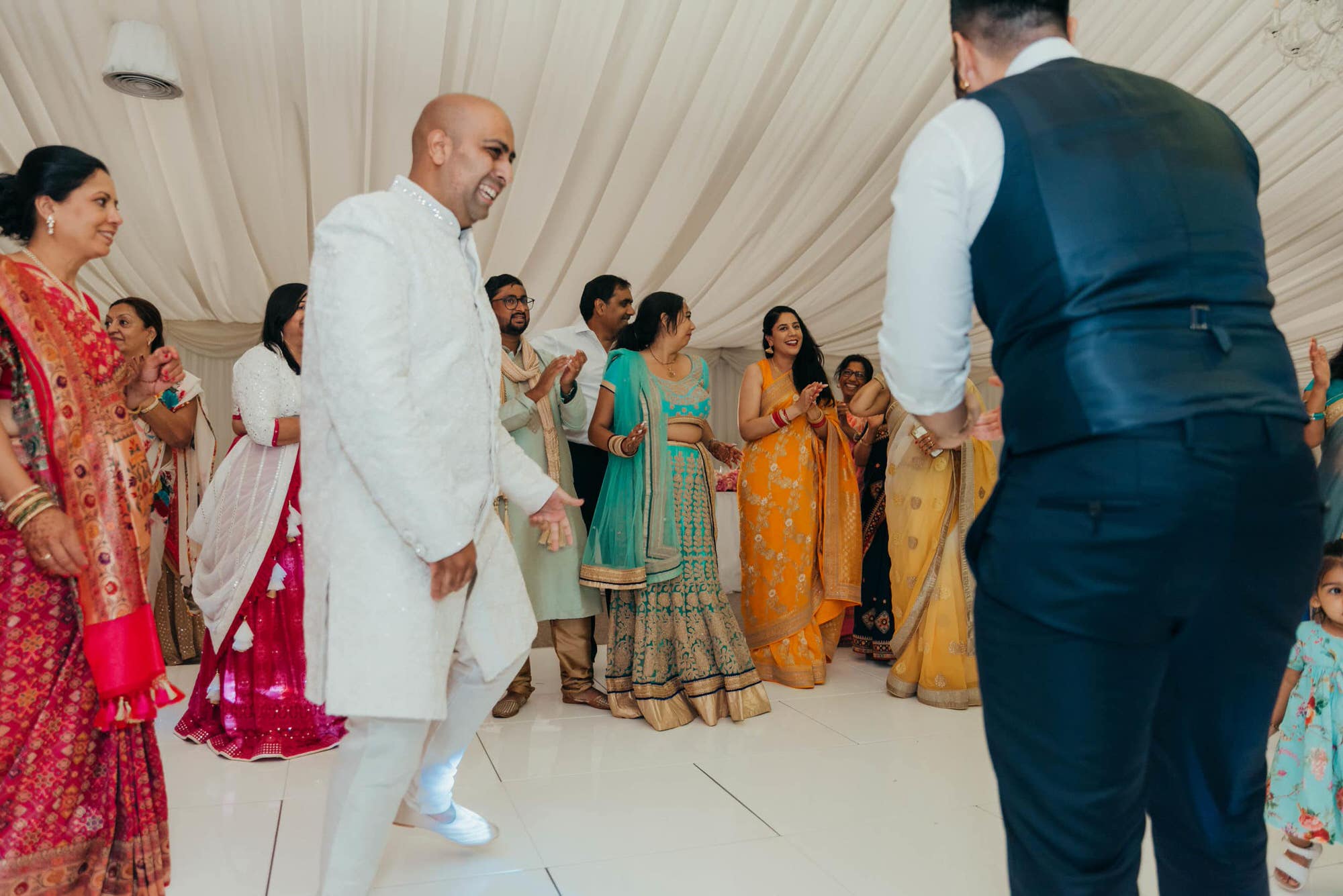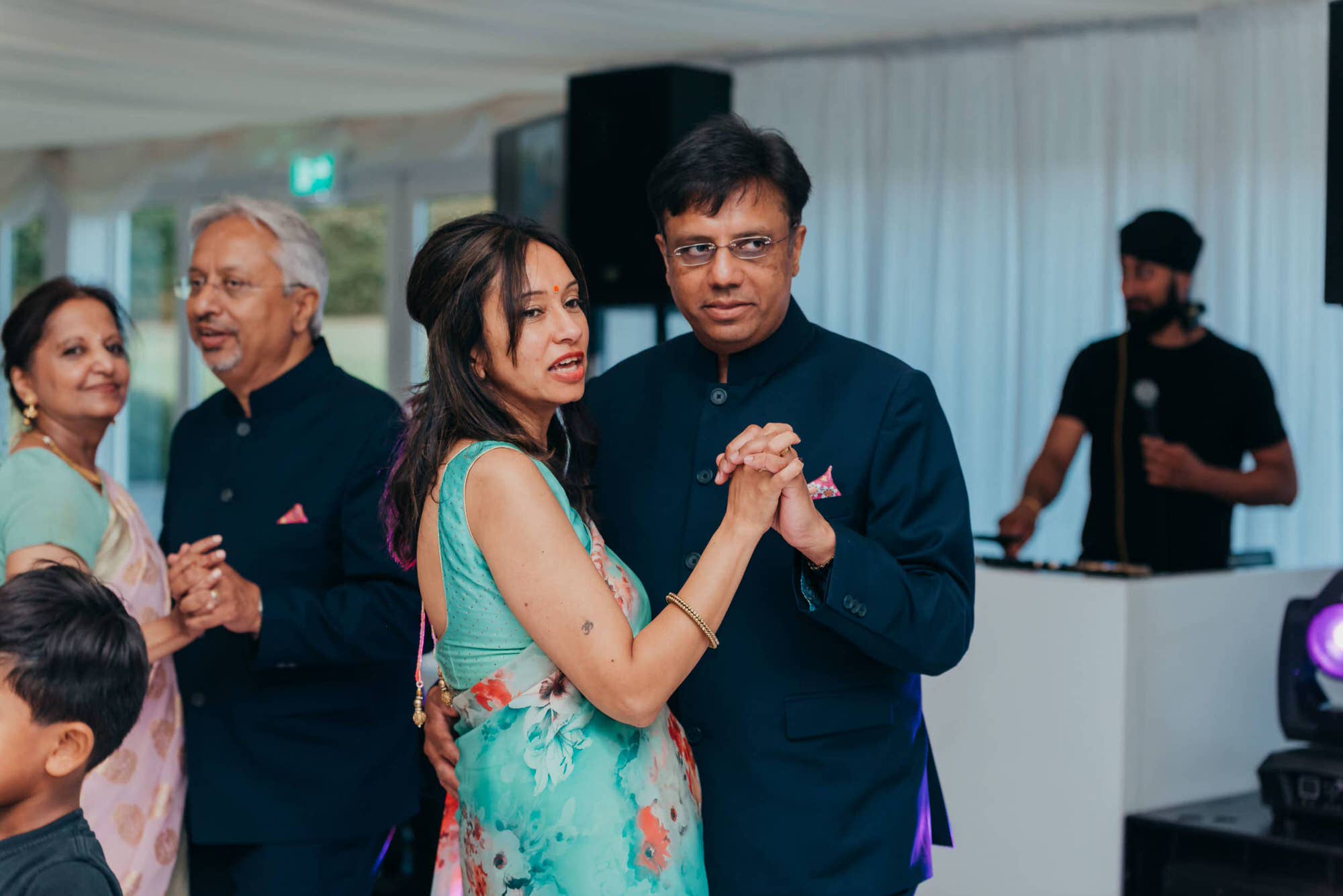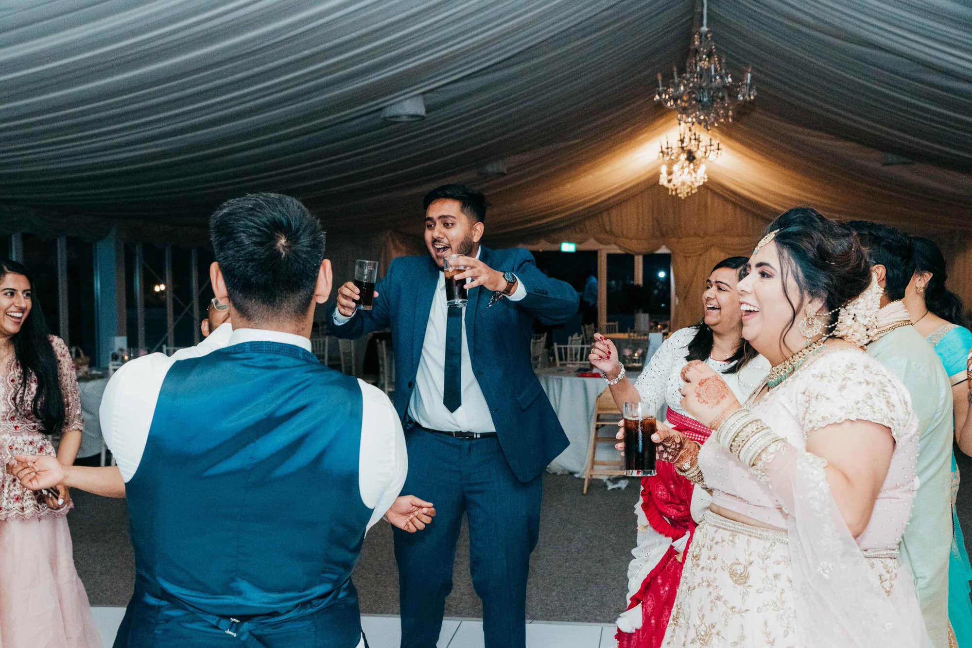 The couple had a cocktail drinks reception in the afternoon, and live music in the evening. For dinner, they sit down Indian cuisine, and the first dance involved the wedding party getting on the dance floor to get the dancing going. They finished off the evening with bhangra and Bollywood tunes.