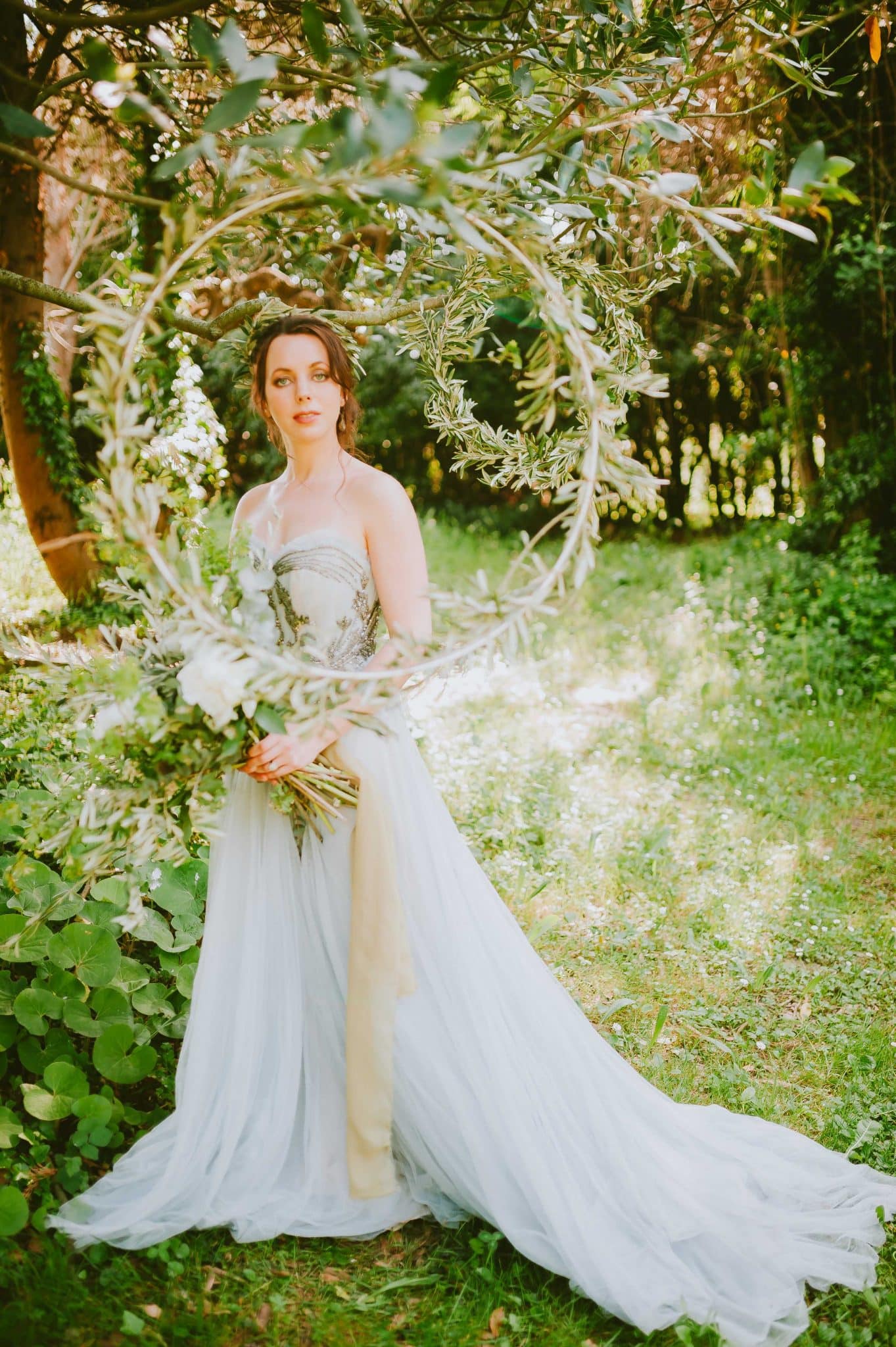 The Theme of the shoot was simple and elegant colours. Dusty grey and light blush pinks, with urban green and ivory whites. I love the color pallet full of muted colors and gorgeous Models. The dress was flowy and full of embellishing works by Jo Fleming designs. The shoes were actually from M and S! yes! I mean just look at them…